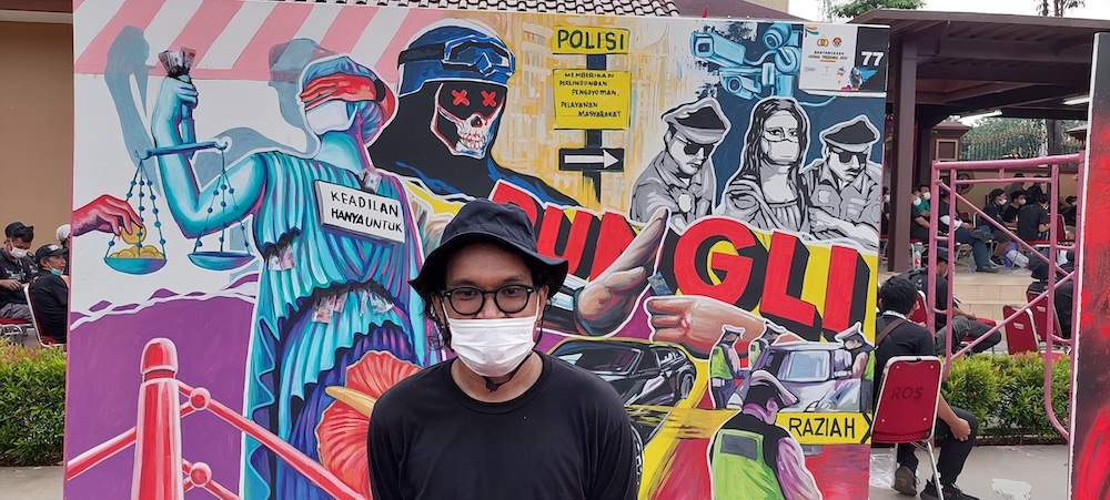 JAKARTA – La Ode Umar menjadi pemenang Bhayangkara Mural Festival 2021. Pelukis mural asal Jakarta itu membawa piala Kapolri, sertifikat dan uang tunai sebesar Rp50 juta.